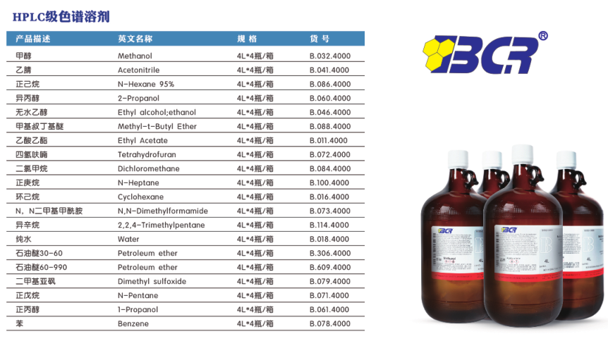其它说明:客户在订购以上产品时,请仔细确认后再订购。由客户选型失误而造成的退货需求,我方不承担任何责任。色谱溶剂大多性质较为特殊,以上产品需整箱或拼箱订购。