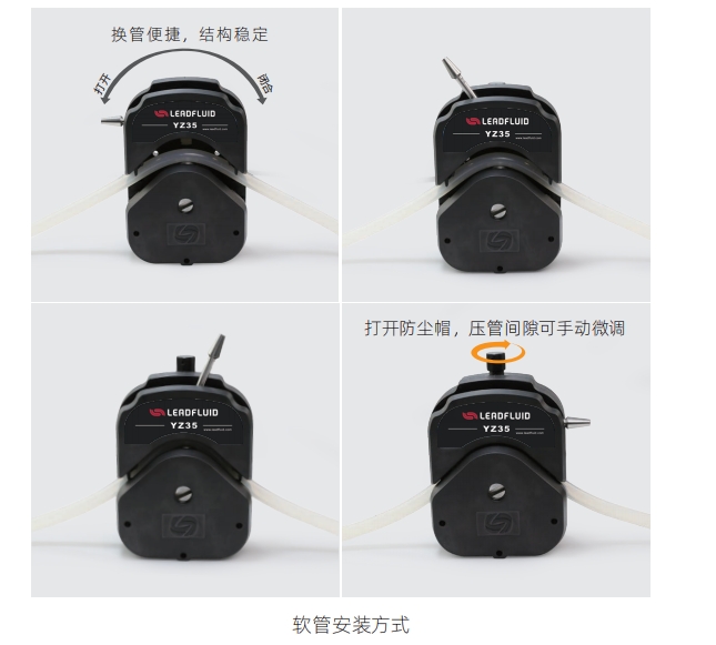 压管间隙可根据软管型号进行微调,可适应泵管规格的少量偏差;