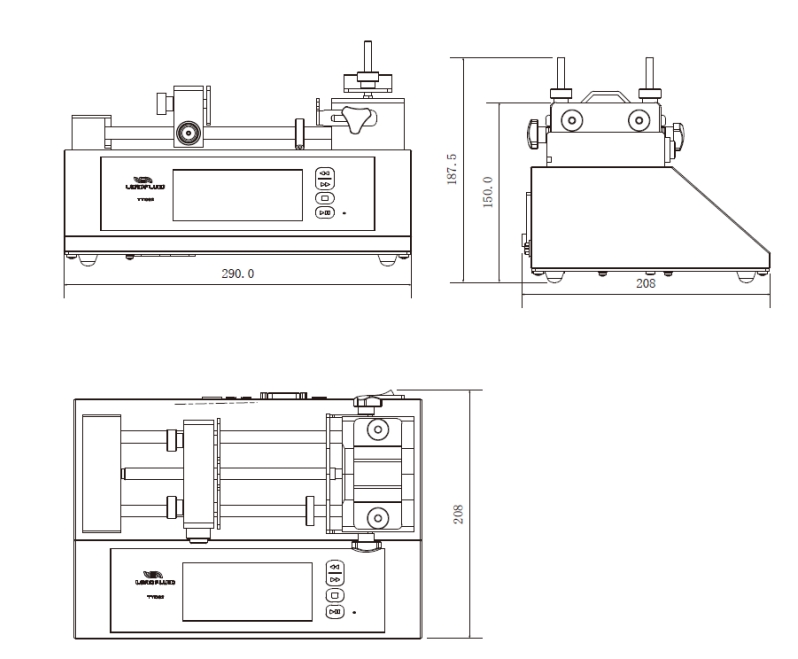 | 显示方式 | 5英寸彩色液晶屏显示;同屏幕显示传输液量、剩余液量、流量、运行方向、注射器规格等;动画显示运行状态 |